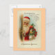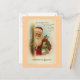 Klassisches Weihnachtsbild des Weihnachtsmanns an der Tür mit Geschenken und Heiligen. Die Botschaft lautet: "Seht lieber Santa's fröhliches Gesicht, wenn er auf Zehenhöhe kommt, mit ihm Freude und Beifall Für alle meine lieben kleinen Freunde hier." Der größere Gruß ist "Ein Weihnachtsgrüß".