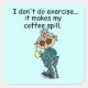 Mildred ist eine grauhaarige Dame mit einigen hübschen starken Meinungen! Auf dieser lustigen Übung Thema Design Staaten sie "Ich mache keine Übung..es macht meinen Kaffee verschütten."! Humorvolle T - Shirt zum Thema Sport, Tasse, Taschen, Karten, Aufkleber, Magnete, Schlüsselanhänger, Ziergegenstände und vieles mehr, versichern Sie sich und andere zum Kitzeln!