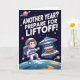 Lassen Sie sich von dieser spaßigen, weltoffenen Geburtstagskarte in ein weiteres Jahr verzaubern! Mit einem im Weltraum schwimmenden Cartoon-Astronauten und einem Geburtstagskuchen aus dem Traktorstrahl eines UFOs ist dieses Design perfekt für Weltraummusiker und Sci-Fi-Fans. Der leuchtende futuristische Text, funkelnde Sterne und farbenfrohe Nebel fügen eine kosmische Touch hinzu und machen diese Karte zu einem unvergesslichen Geburtstag!