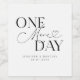 Minimalistisches Weinflaschen-Etikett für Hochzeitsessen mit Probe-Schriftzeichen, auf dem steht "noch ein Tag". Der Hintergrund ist weiß.