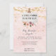 "Ein kleiner Kürbis ist unterwegs!" Handgemalte rosa und lila Aquarellblumen und Blattwerk mit goldenen Glitzer-Saitenlampen Baby Dusche Einladung mit einem weichen, rot schimmernden Glitzer glänzen Hintergrund für ein magisches und elegantes Baby-Girl-Duschthema. Artwork wurde von Audrey Jeanne Roberts, einem international anerkannten Künstler, in Aquarellen gemalt.