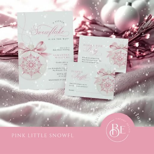 Feiern Sie die Ankunft Ihres kleinen Mädchens mit unserer Einladung "A Little Snowflake Pink Baby Shower". Dieses Design mit einer zarten rosa Wasserfarbenschneeflocke in einem Weihnachtsschmuck ist wunderschön mit einem Coquette-Rosa-Bogen verziert und verleiht dem Ganzen einen zarten, winterlichen Charme. Der elegante Script-Schriftart fügt eine klassische Touch hinzu und zeigt die Phrase "Eine kleine Schneeflocke ist unterwegs." Diese Einladung eignet sich perfekt für eine winterliche Babydusche und verbindet festliche Elemente mit femininen Details. Ideal für ein Mädchenfest.
