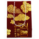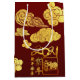 Golden Auspicious Wolken + Ox Papier-Schnitt, Jahr des Ochsen, Gruß in Chinesisch und groß 2021 in Kalligraphie-Stil geschrieben. Alle Elemente können nach Belieben verschoben werden. Design auf mittlere Geschenktasche mit Farbverlauf dunkelrot Hintergrund. Erhältlich in großen, kleinen und Wein Geschenktaschen. Matching Grußkarte, Einladung und mehr... Ideal für ein traditionelles und modernes chinesisches Neujahr des OX 2021.