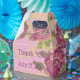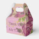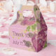 Gastgeschenk Hochzeit Gästekiste mit lila Rose geblümten Muster. Der Text auf der Vorderseite und auf der Rückseite kann auf jede Nachricht personalisiert werden, oder Text ist abnehmbar. Der lila Hintergrund kann in eine beliebige Farbe geändert werden.