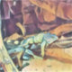 Iguane ruht sich auf einem Ast aus, er wird mit heißen Farben lackiert, um die Ruhe des kleinen Drachen zu verstärken.