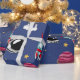 .: Fun a whimsy in diesem Raum Abenteuer Design. .: Array von lebhaften Farben auf einem schönen blauen Hintergrund .: Koordinieren der verfügbaren Objekte.