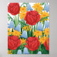 Eine helle Illustration der Blume Poster-Blume sind das Wesen der Natur. Das ist für alle Blumenfreunde und Gärtner! Die Kunst ist eine helle und lebendige Illustration der Blumen Rot, Blau und Gelb.