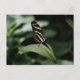 Ein Foto eines Zebra Langschwinger Schmetterlings, der auf einem Blatt der Pflanze ausgeglichen wurde, während er den süßen Nektar genoss, den er aus einer nahen Blume gesammelt hatte.