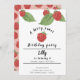 Himbeergeburtstag Einladung mit niedlich rosa Himbeeren, perfekt für eine pinkfarbene Fruchtsommer Geburtstagsfeier.