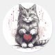 Eine bezaubernde Katze, die ein Herz hält Runder Aufkleber