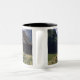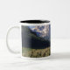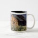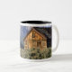 Eine Blockhütte und das Sawzahngebirge in Zweifarbige Tasse