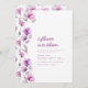 Wenn Sie einfach Stil Liebe, ist diese Einladung richtig für Sie. Die Einladung zeichnet sich durch ein elegantes Design aus, mit einem weichen, weißen Hintergrund mit zarten violetten Aquarellblumen auf den links. In der Mitte sind die Details des Party wunderschön in lila Text gestaltet, der eine gewisse Eleganz ausstrahlt. Das Party ist stilvoll eingerichtet und lädt zum Entspannen ein. Hintergrundfarbe und Text können bearbeitet werden.