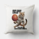 Wie Katzen und Ball? Sie werden dieses Wange-Mashup auf diesem Kissen Liebe, das einen Ozelten zeigt, der einen Basketball sachkundig tropft, begleitet von dem Slogan "One Cool Cat Who Lieben to Play Bas-Cat-Ball". Umkehrung zeigt identisches Design. Design © W.H. Sim. Weitere Informationen unter zazzle.com/word2art