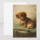Dackel Welpe (1888) | Carl Reichert’s A Dackel Puppy ist ein hübsches Portrait mit einem kleinen braunen Dackel Welpe, der auf einem Holzhocker steht. Das Kunstwerk erfasst den eigenartigen und unschuldigen Ausdruck des Welpen mit exquisiten Details, von der weichen Textur seines Pelzes bis hin zur subtilen Schattierung seiner Umgebung. Set in einer warmen, neutralen Umgebung, strahlt die Komposition ein Gefühl von Gemütlichkeit und Charme aus und zeigt Reichert außergewöhnliches Talent für lebensechte und liebenswerte Tierportraits. Verwenden Sie die Entwurfstools, um einen benutzerdefinierten Text hinzuzufügen oder das Bild zu personalisieren.