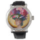 Uhr, Klassische Damenuhr mit schwarzen Lederarmband