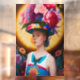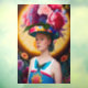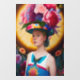 Ein Bild einer Dame mit einem blumigen Sonnenhut. Dieses Bild wurde von AI mit Blumendesign erstellt.