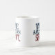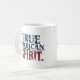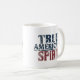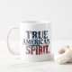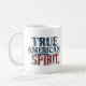 Eine klassische weiße Tasse mit der Phrase "True American Spirit" in fett gedruckten, patriotischen Farben (rot, weiß und blau) um den Rand.