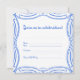 Diese individuell gestaltbare Einladungskarte kann verwendet werden, um jedes Party anzukündigen, inklusive Babyduschen, Brautparty, Geburtstagspartys, Party zur Geschlechterenthüllung und jede andere Ansammlung einer Gruppe. Mit einem allgemeinen Motiv aus Bögen und Spitzen-Rändern in einer eleganten, blau-weiß-farbenen Kombination ist dieses kühle Design sehr dekorativ und beeindruckt alle Party-Einladungen. Füllen Sie Ihre Party-Angaben auf der Rückseite mit den Leerzeilen aus. Andere ähnliche Designs und Farbcombos sind in meinem Shop erhältlich.