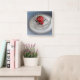 Eine Erdbeere in einer Tasse Quadratische Wanduhr
