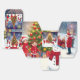 Eine Feier in Rot-Schrift: Weihnachten und N Geschenkschachtel