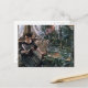 Eine Frau, die in der Nähe eines Goldfisch-Tanks l Postkarte