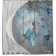 Eine Frau in blauem Kleid auf einer Schaukel Duschvorhang