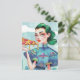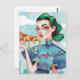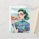Eine Frau mit einem Stück Pizza-UFO-Shirt Postkarte