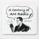 Ein Retro-Ansager, der ein Jahrhundert der AM-Radiosendung verkündet, die 1920 mit den ersten AM-Sendern begann und bis heute auf der AM-Band und mit digitalen Streaming-Internetübertragungen weitergeht. Vakuumröhren und Kristall-Sets sind Bilder aus dem goldenen Zeitalter der Funksignale.
