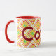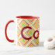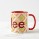 Große Designer-Tasse, gelb, grün, bordeauxrot und rot. Text kann mit einem Namen personalisiert werden, oder Text ist auch abnehmbar, um Ihren Küchenstil Anzug.