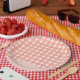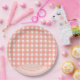 Eine Karierte Pfirsichdusche Pappteller