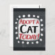 "Adoptier A Cat Today" ist ein niedliches Textdesign in Grau mit Schwarz und Rot. Er sitzt auf einer weißen Akzent-Form und niedliche weiße Polka-Punkte, die ihn umgeben.