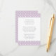 Die Eintrittskarte für die Babydusche beinhaltet eine Anfrage an die Gäste, ein Buch anstelle einer Karte mitzubringen. Enthält einen violetten lila-weißen Polka-Punkt-Rand mit grauem Text.