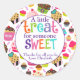 Eine niedliche und farbenfrohe "Eine kleine Leckerei für jemanden süß" Aufkleber. Das Muster besteht aus niedlichen Cupcakes und Süßigkeiten - ideal, um Ihren Valentinstag, Ihre Hochzeit oder Ihre Verlobungsfeier zu süßen Vorzügen hinzuzufügen. Oder nur weil :) Das wäre ein großartiger Aufkleber für die Anerkennung der Lehrer oder mit einem Dankeschön an Mitarbeiter und Freiwillige.
