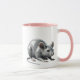 Eine kleine Maus sucht heimlich nach ihrem Essen. Tasse