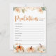 Feiern Sie die Ankunft Ihres Kleinen mit unserer **A Little Pumpkin Baby Shower Predictions Card**. Diese reizvolle Karte bietet ein charmantes Kürbisthema, das sich ideal für eine Herbstdusche eignet. Die Gäste können ihre lustigen und nachdenklichen Vorhersagen über die Zukunft des Babys teilen und so einen wertvollen Sake für die zukünftigen Eltern schaffen. Mit seinem skurrilen Design und den Herbstfarben verleiht diese Karte Ihren Babyduschfestivals eine besondere Touch. Machen Sie Ihre Feier unvergesslich mit einer Karte, die die Begeisterung und Vorfreude für ein neues Baby erweckt.