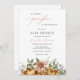 Pumpkin-Thema Babydusche Einladung. Der Kürbis ist mit rosa Blume und Blattwerk gestaltet. Personalisieren Sie Ihre Daten oder klicken Sie auf "Weitere Anpassungen vornehmen", um Schriftart Stile, Größe und Farben zu bearbeiten.