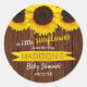 Eine kleine Sonnenblume ist unterwegs! Babyparty Runder Aufkleber