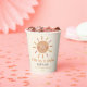 Eine kleine Sonnenstraße mit gelber Sonnendusche Pappbecher