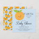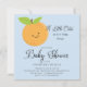 Eine kleine Süsse befindet sich auf dem Weg zur Babydusche mit einem zauberhaften, orangefarbenen Set auf hellblauem Hintergrund. Dreh unsere Einladung nach hinten, um einen koordinierenden Rücken mit Orangen-Set auf einem blauen Hintergrund zu sehen. Besuchen Sie unseren Shop und sehen Sie sich unsere kleine Süsse Design Kollektion an.