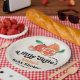 Eine kleine Süsse ist unterwegs mit einer orangefa Pappteller