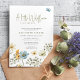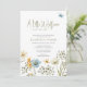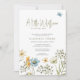 Moderne Aquarellblume "eine kleine Wildblume ist auf dem Weg" boho chic geschlechtsneutral elegante legendäre Feder Baby Dusche Einladung Vorlage mit Natur-Wildblumen in Blütenrahmen und Schmetterlinge.