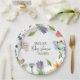Eine perfekte niedliche Wildblume mit Blumendusche für eine junge Mami. Diese wunderschönen Wildblumen Papier-Teller mit Blumenstrauß und Wildblumen in Rot, Gelb, Gelb, Gelb und Blau, Schmetterlinge von Aquarellfarben-Wildblumen auf einem blauen Hintergrund.