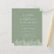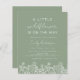 Feiern Sie die Ankunft eines neuen Freudenbündels mit einer schönen kleinen Wildblume auf dem Weg zum Thema Babydusche. Begleiten Sie uns für einen Nachmittag voller Liebe und Freude, während wir die künftigen Eltern ehren. Die Einladung zeichnet sich durch einen atemberaubenden, olivgrün oder salzgrünen Hintergrund aus, der durch eine Vielzahl von lebhaften Wildblumen hervorgehoben wird.