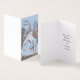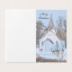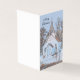 Eine schöne, schneebedeckte Kirche bringt Wünsche für ein frohes Weihnachtsfest und ein wundervolles Neues Jahr.