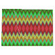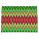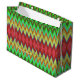 Eine lebendige Geschenktasche mit einem auffälligen, farbenfrohen Zickzack-Muster in Grün-, Rot- und Gelbtönen. Sie hat weiße Griffe und vermittelt einen festlichen, lebendigen Ton.
