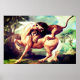 Eine Löwe attackiert ein Pferdegemälde -17620 Poster