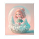 Eine lustige kleine Puppe auf einer Wolke Notizblock