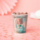 Eine lustige kleine Puppe auf einer Wolke Pappbecher