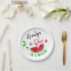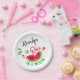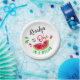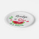 Feiern Sie Ihren ersten Geburtstag mit unserem personalisierten in einem melonischen Papier-Teller. Das Design enthält eine halb gegessene Wassermelonfrucht in Aquarellfarbe mit dem Namen Ihres Kindes in einem Melontext.