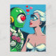 Eine Mit Augen Alien Frauen und grüner Roboter in Postkarte